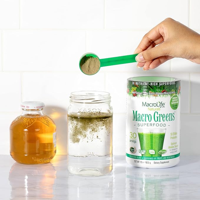 MacroLife Naturals Macro Greens Powder 38 Superfood Probiotic Antioxidant Enzyme & Herbal Supplement Immunity Energy Cleanse - Non-GMO Vegan Gluten-Free Dairy-Free - 10oz (30 Servings)