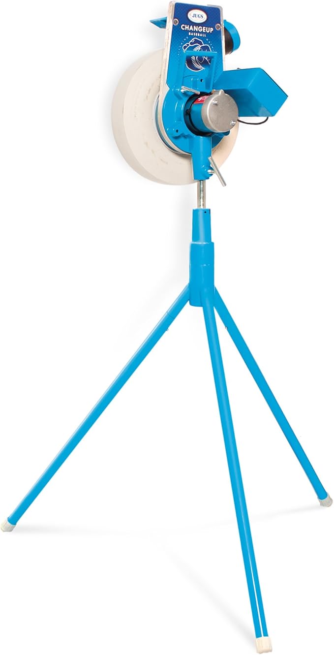 Jugs Changeup Baseball Pitching Machine— New Changeup Feature! Fastballs up to 70 mph and changeups at speeds as Low as 44 mph. Remote Control—Fastball to changeup at The Touch of a Button.
