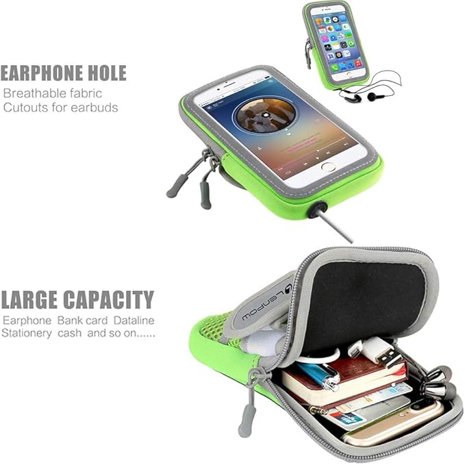 - BONUS FEATURES: 1. Built With Earphone Hole: Put Your Headset Through The Earphone Hole At The Bottom And Connect Your Phone; 2. Our Armband Includes A Reflective Strip For Safe Running In Low Light Conditions. 3. Touch Screen Compatible: Enjoy Full Navigational Control Of Your Phone Such As Receiving Calls, Changing Music, Editing Text Messages Even Games Without Taking Out The Phone