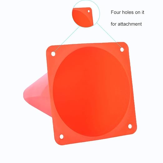 - Size and Windproof:Each athletic cones measure 9 inches tall, 5.5 inches in diameter with 4 holes .decorations.If it's a windy day, just stick it to the ground and you don't have to worry about it being blown all over the place.