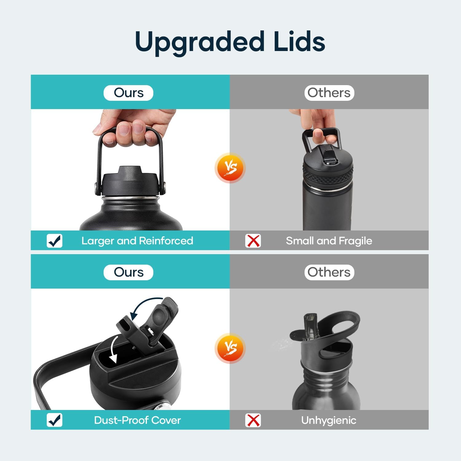 - Superior Material: Made of 100% non-toxic BPA-free plastics & durable food-grade 18/8 stainless steel, protecting the water flask from oxidation and flavor transfer
