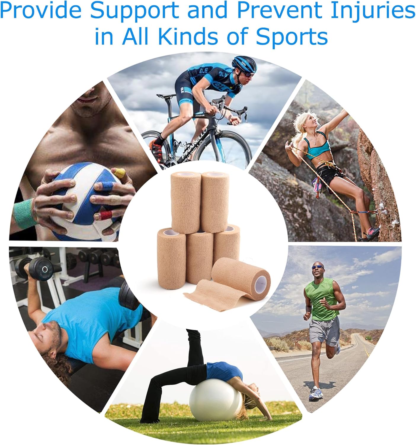 - Valuable Package: The bandage wrap comes with 6 pcs in tan color, each roll individually poly bagged and measures 4 inches in width and 5 yards in length. Use to protect any body part; works well on ankle, wrist, finger, toe, elbow and knee. Also safe for pets.