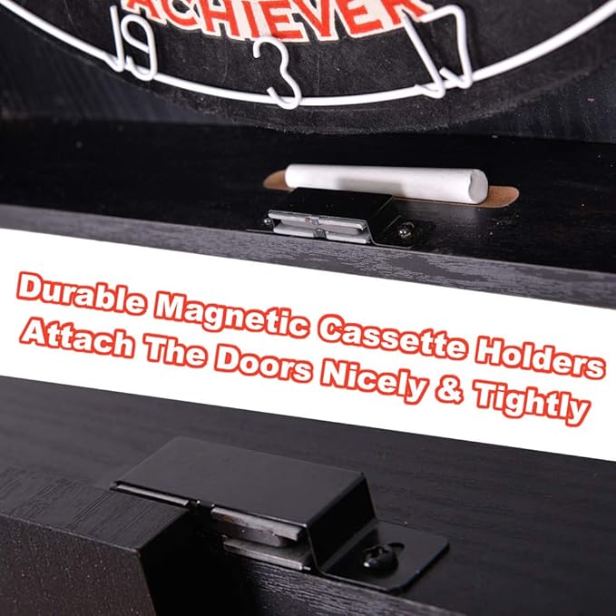 - HIGH-CLASS MULTIFUNCTIONAL CABINET- Incorporating dart holders, scoreboards and pen holder, the solid wooden cabinet defend your wall in a large area. It is also highlighted by strong corner protection and hanging hooks. Open dimensions: 21.65β (55cm) H x 39.57" (100.5cm) L x3.35"(8.5cm) D; Closed dimensions: 21.65β (55cm) H x 19.68" (50cm)L x3.35"(8.5cm) D.
