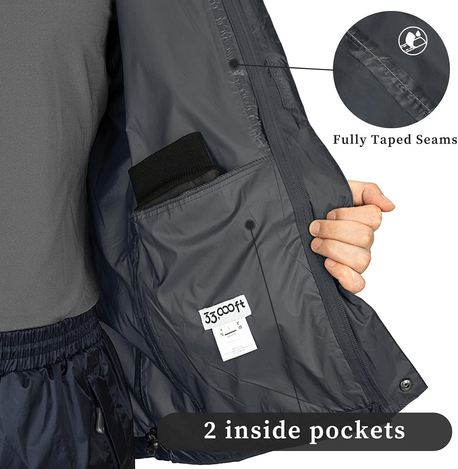 33,000ft Packable Rain Jacket Men's Lightweight Waterproof Rain Shell Jacket Raincoat with Hood for Golf Cycling Windbreaker