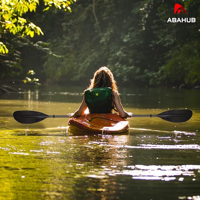 - CARBON DESIGN - LIGHTWEIGHT & DURABLE: Made of premium quality 1.25mm thick, 29mm diameter carbon fiber composite shaft, and fiberglass reinforced polypropylene blades, this kayak paddle is impact and erosion resistent, thus for great durability. It weighs only 33 oz, and is perfect for beginner and intermediate kayakers.