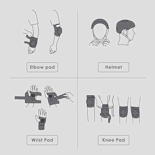 - 3-PACK SAFETY GEAR (Knee and elbow pads ,wrist guards ): They have the plates and protective cups made of tough plastic. The interiors consist of soft EVA plastic to make you feel comfortable.The straps can secure you nicely with adjustable Velcro closures.