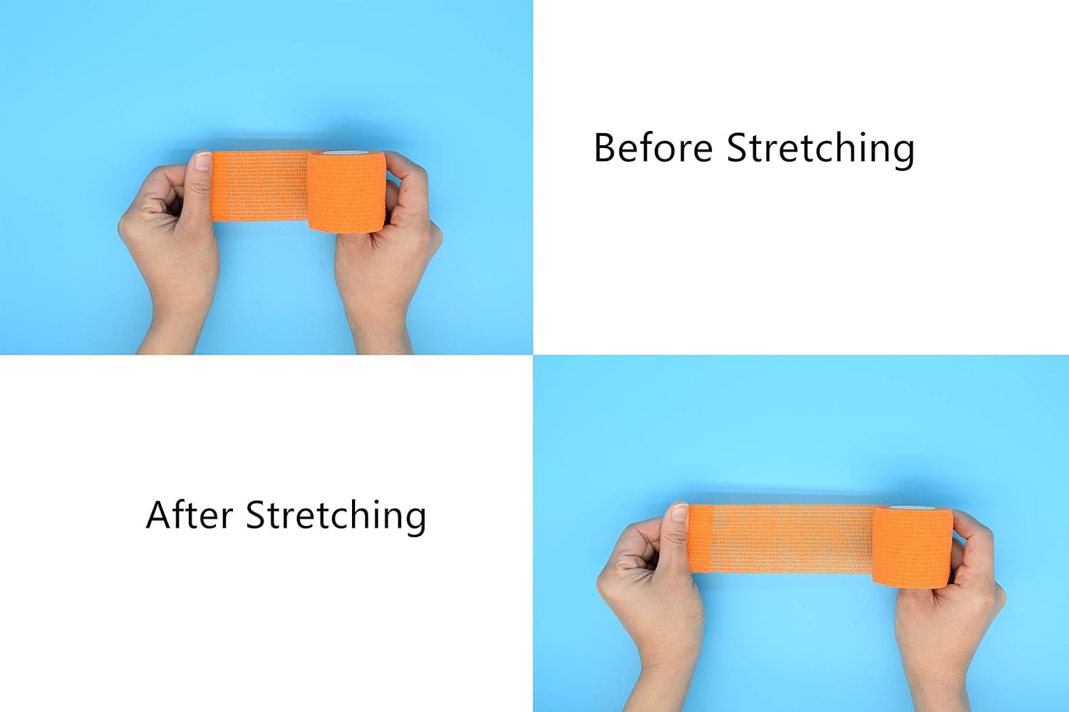 - Easy To Use: The self adhesive bandage wrap is very easy to be torn by hand at what ever length you need. No scissor is needed. The wrap is elastic and stretchy for you to wrap, and very easy to remove.