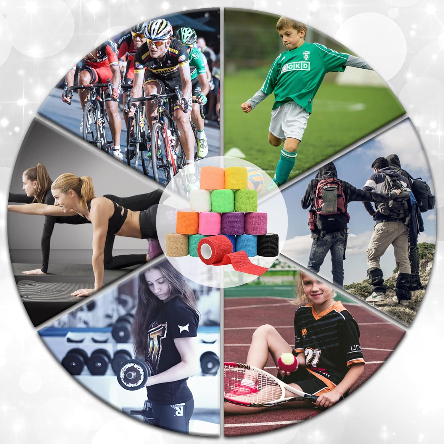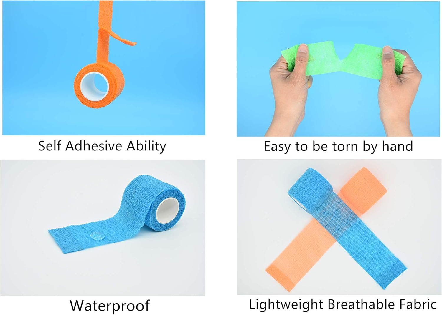 - Package Include: 15 pieces stretch self-adherent tape which is individual wrapped in dimensions 2 inches x 5 yards, large amount for a whole family use. Totally 15 colors, colorful and fun for kids to wear.