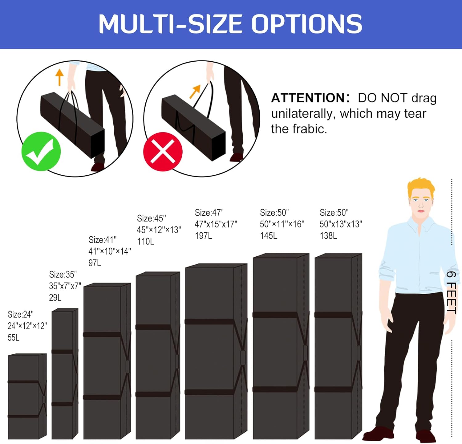 INFANZIA 45 inch Duffel Travel Sports Equipment Bag, 2PCS Long Luggage Bag with Upgrade Zipper Water Resistant, Extra Large Foldable Storage Bag for Camping, Tent, Tripod, Fishing