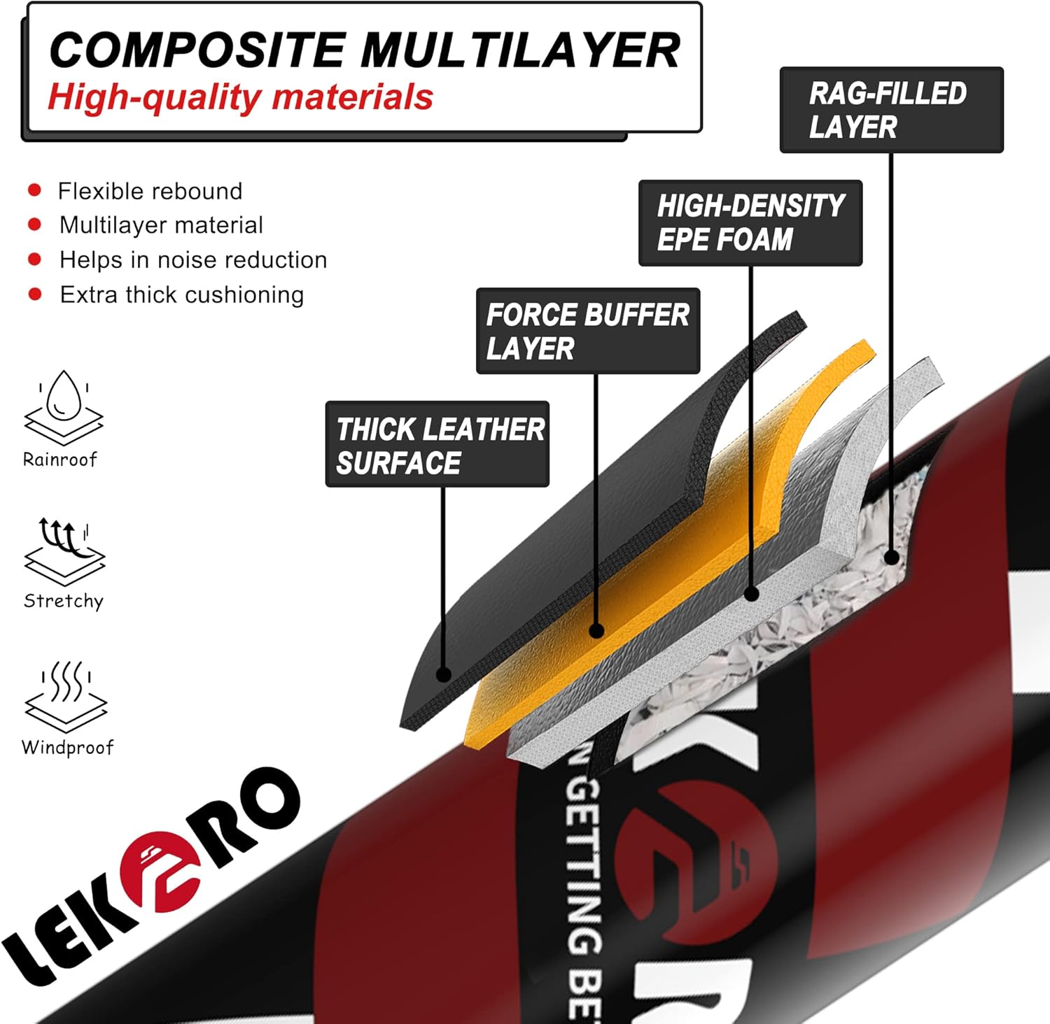 - 【High Quality Materials】Adopt four-layer composite structure, tear-resistant, fast rebound and high elasticity. The inside is a high-strength steel bracket, with high-density EPE foam, soft fabric interlayer, force buffer layer and a thicker artificial leather surface.