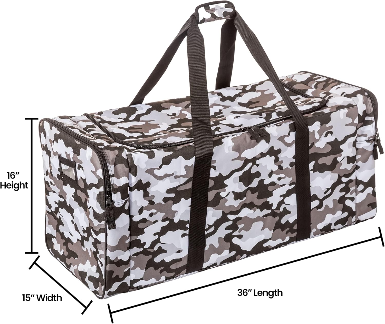 • πƒπˆπŒπ„ππ’πˆπŽππ’: The foldable feature of our duffle bag makes it ideal for an easy storage option, fit it in your locker, your car or in the garage. Dimensions are - 36"L x 16"H x 15"D and 16"L x 2”H x 15"D when folded