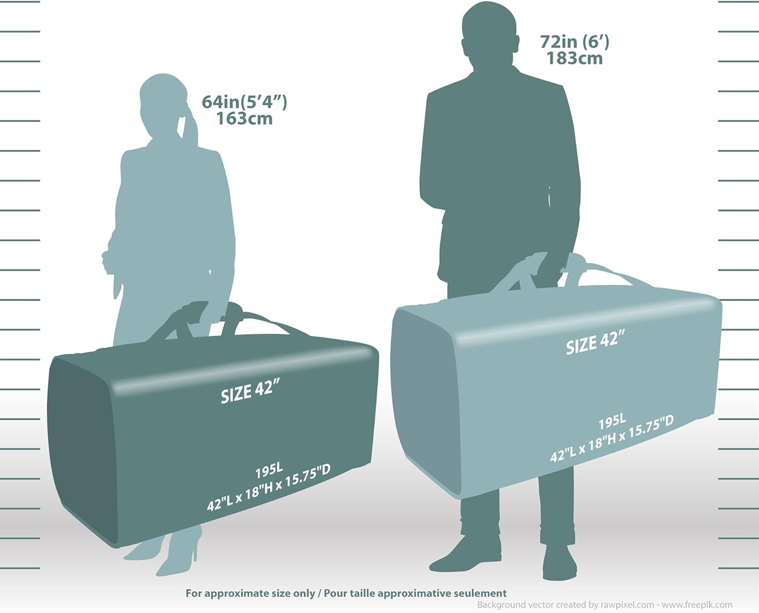 - ππππππππππ: The foldable feature of our duffle bag makes it ideal for an easy storage option, fit it in your locker, your car or in the garage. Dimensions are - 42L x 18H x 15.75D inches and 18L x 2H x 15.75D inches when folded