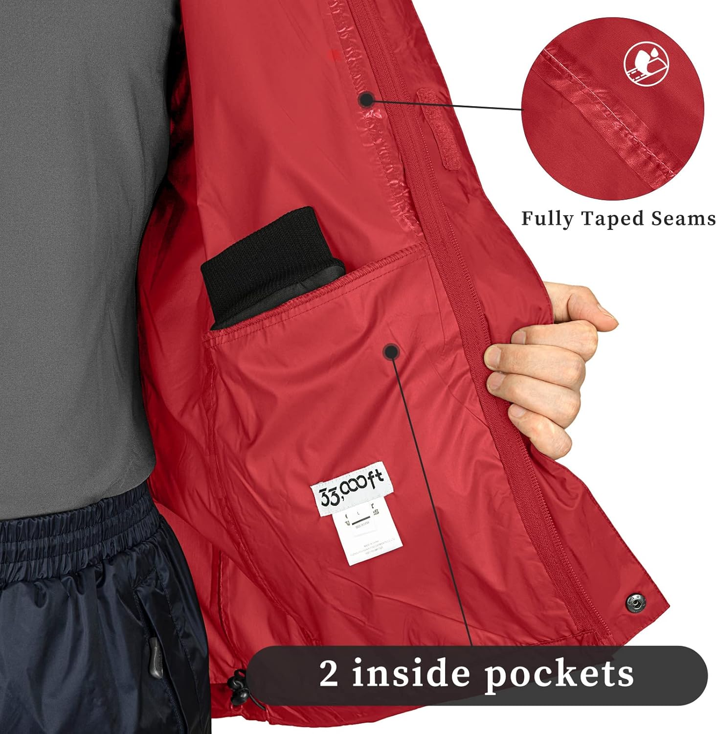 33,000ft Packable Rain Jacket Men's Lightweight Waterproof Rain Shell Jacket Raincoat with Hood for Golf Cycling Windbreaker