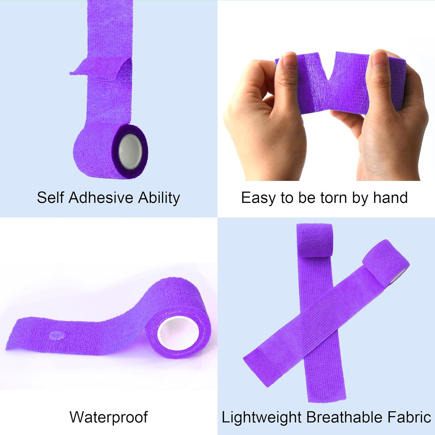 - Easy To Use: The self adhesive bandage wrap is very easy to be torn by hand at what ever length you need. No scissor is needed. The wrap is elastic and stretchy for you to wrap, and very easy to remove.