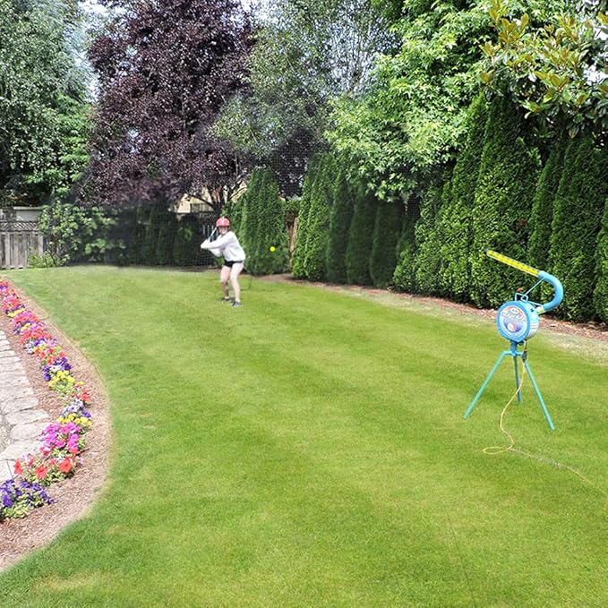 - Throws 5-inch, 5-ounce polyurethane foam ball, that's half the size of normal baseball.