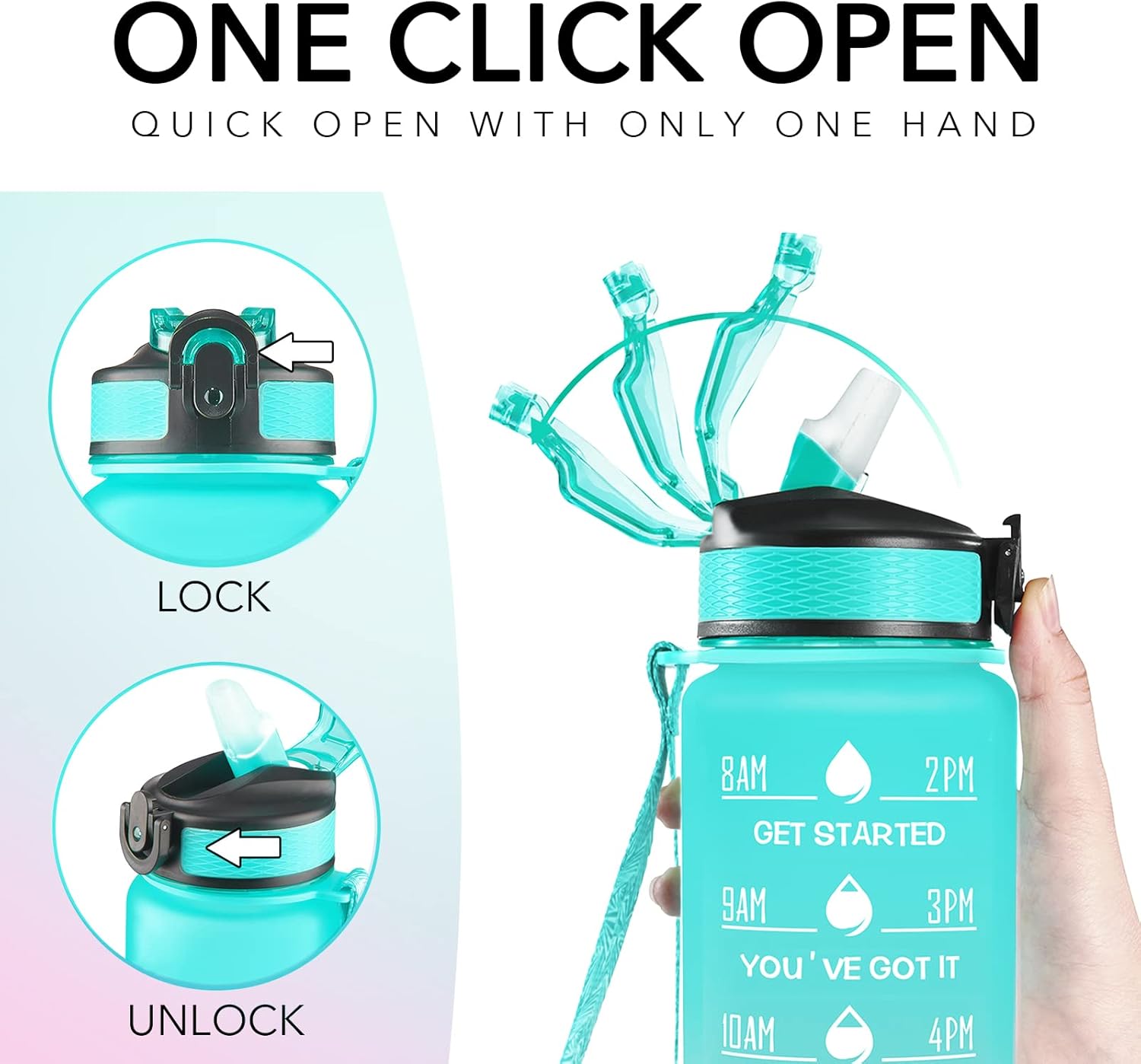 - Functional Design: The bottle with straw allows for spill-proof sipping; The flip-top lid has a secure lock leak and can be opened easily with one hand; The wide mouth fits ice and is easy to clean.
