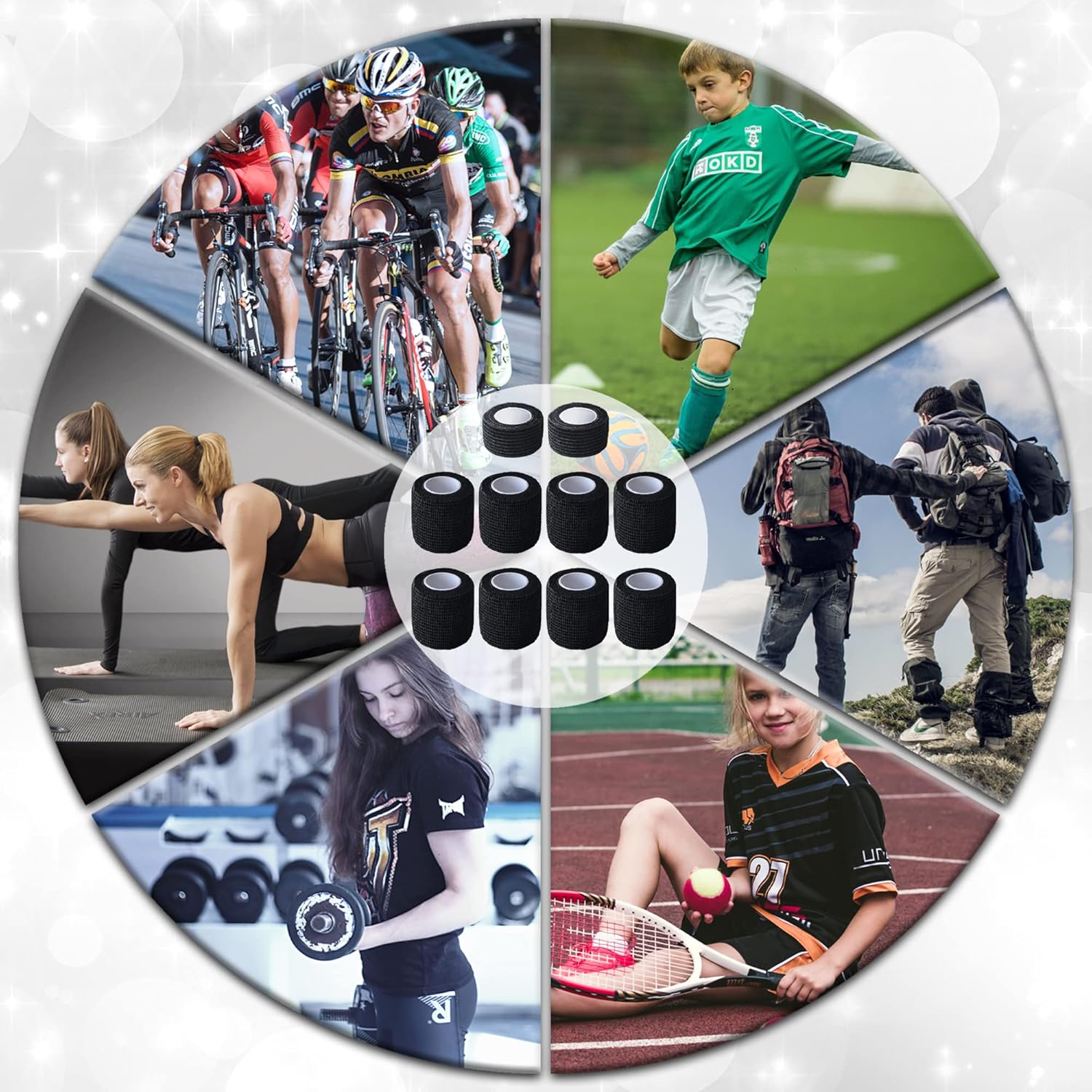 - Package Include: 8 pieces stretch self-adherent tape in 2 inches x 5 yards and 2 pieces finger wraps in 1 inches x 5 yards, each roll is individual wrapped. Large amount for a whole family use. Fun for kids to wear.