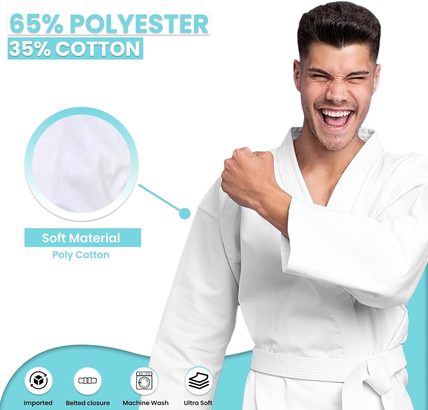 JP White Karate Uniform for Kids & Adults Lightweight Student Karate Gi Martial Arts Uniform with Belt