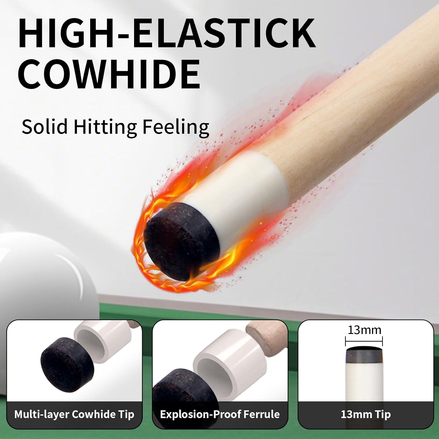 - Comfortable Pool Stick: The grip is leather-wrapped, cracked texture, sweat-absorbing and non-slip, comfortable to hold for a long time without tiring hands, reducing deflection and improving accuracy