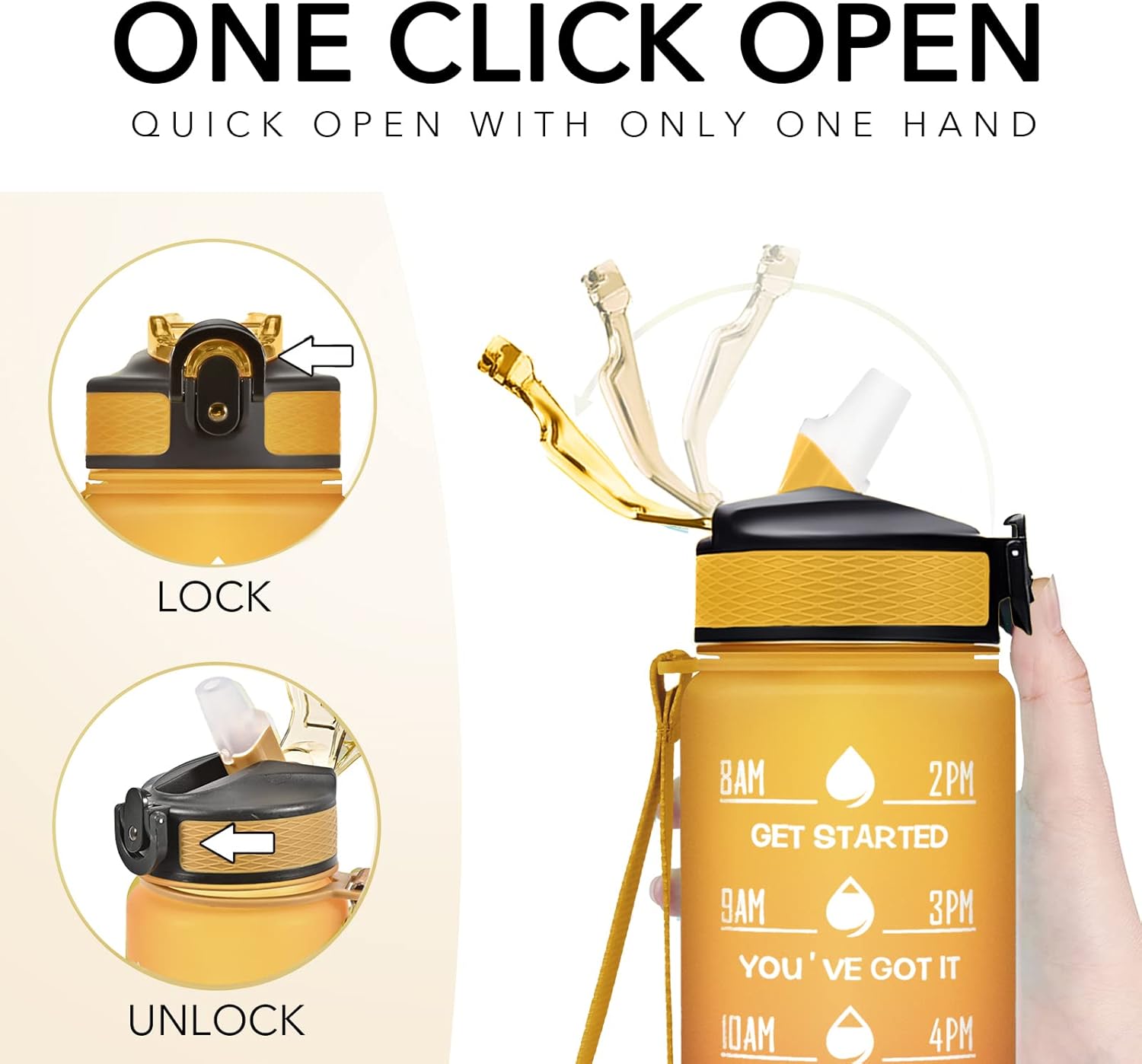 - Functional Design: The bottle with straw allows for spill-proof sipping; The flip-top lid has a secure lock leak and can be opened easily with one hand; The wide mouth fits ice and is easy to clean.