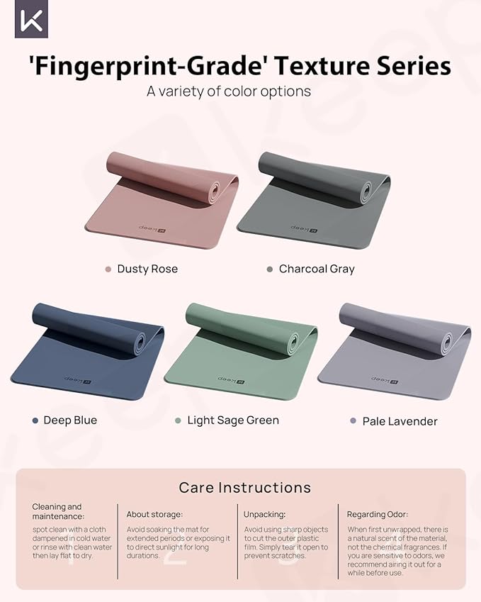 - Double-Sided Non-Slip -- Our fitness mat features a fingerprint-like anti-slip texture on the top layer, offering precise grip and control during every pose. The bottom layer features a comprehensive anti-slip pattern, ensuring no corner is left unsecured, giving you a solid, unwavering foundation.Whether you're practicing on a dry or wet surface, you can focus on your workout with complete peace of mind