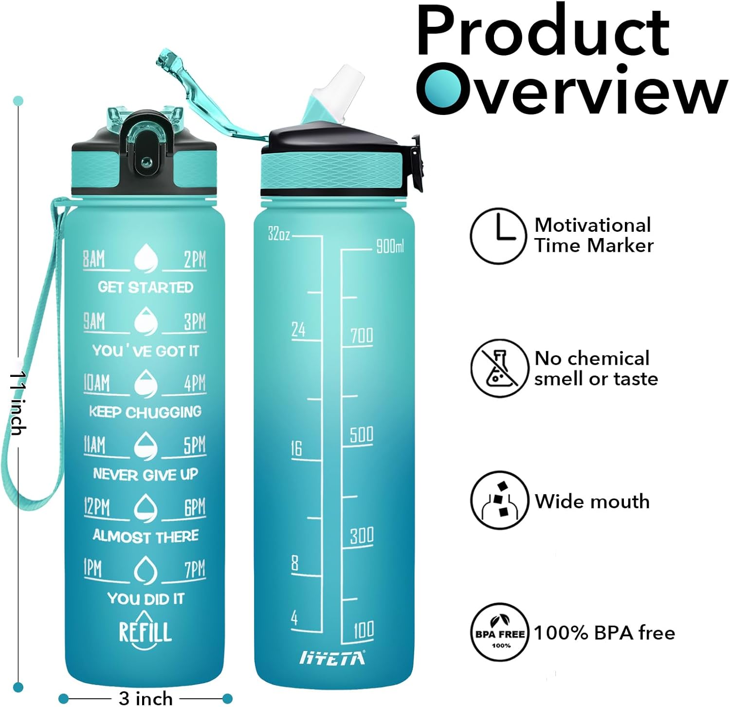 Hyeta 32 oz Water Bottles with Times to Drink and Straw, Motivational Water Bottle with Time Marker, Leakproof, Drinking Sports Water Bottle for Fitness, Gym and Outdoor
