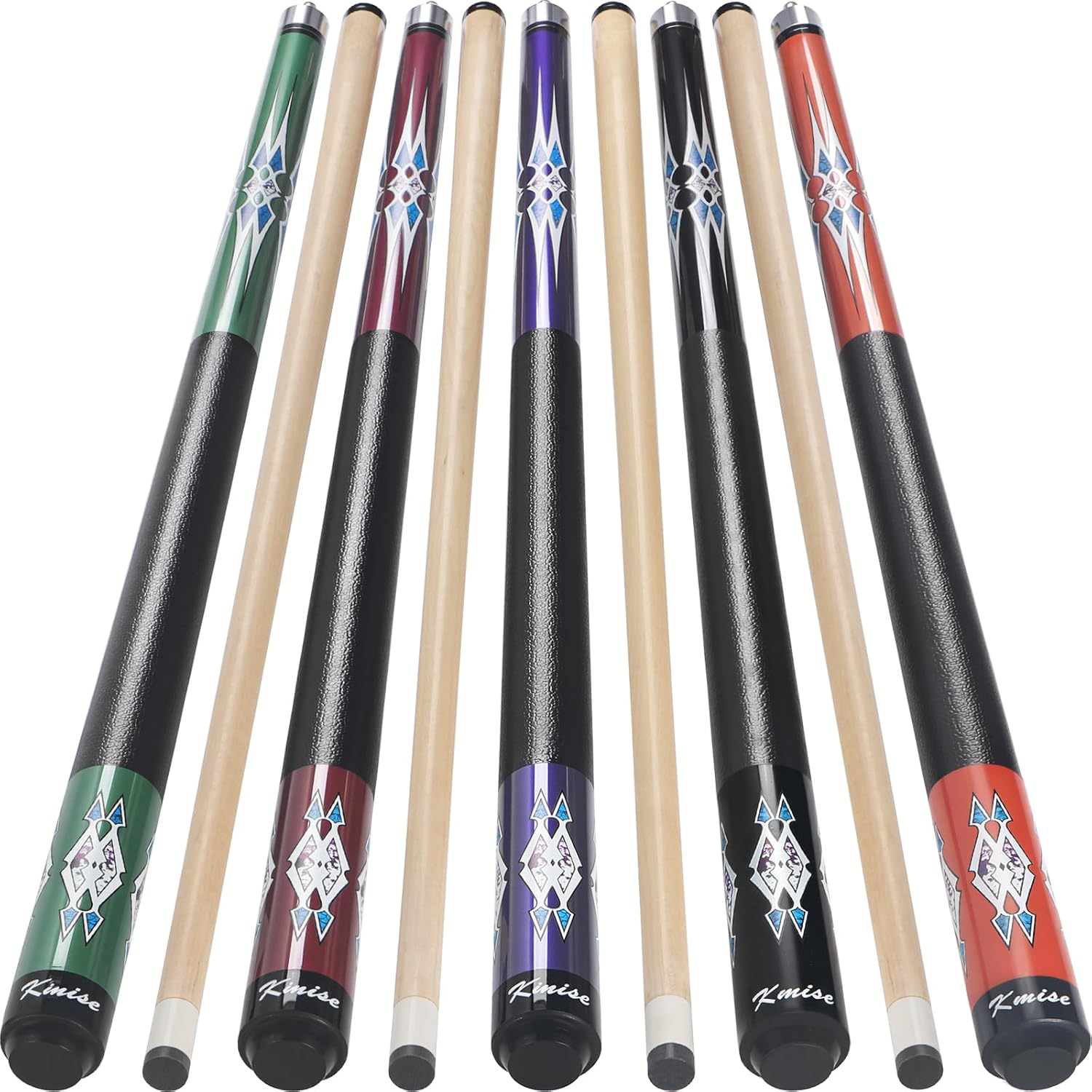 - Pool Sticks for Adults: Kmise pool cues feature a stainless steel connector for a tight connection and durability,great for bar/billiard hall/house use,5 color (Black Green Red Orange Purple) pool stick set is more cost-effective