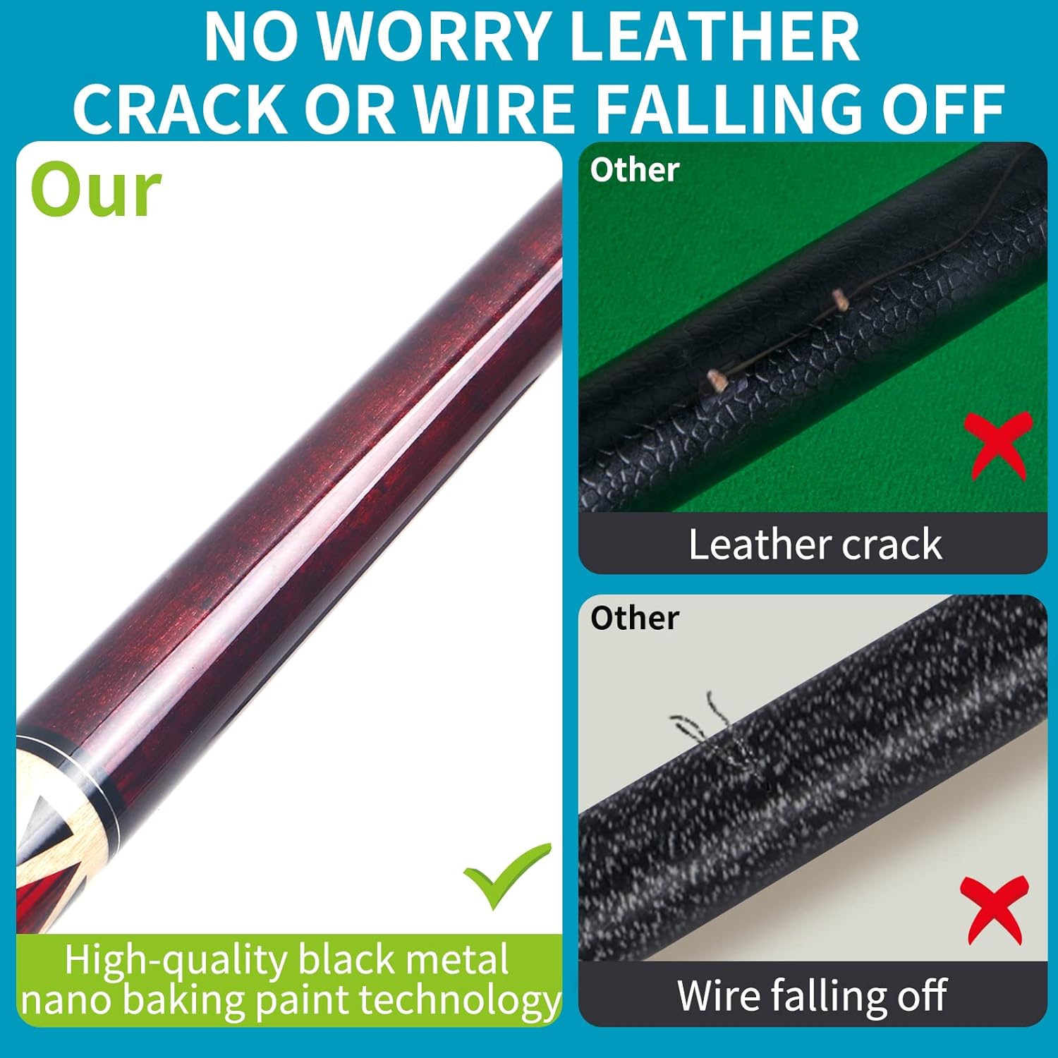 - ✅【ATTRACTIVE BAKING PAINT DESIGN】-AKLOT Pool stick adopt optimized lightning maple and high-quality black metal nano baking paint technology.You do not worry about the leather crack or thred falling off.