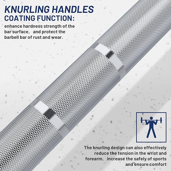 - Enhanced Grip with Precision Knurling: Designed with a 28mm shaft and 1.2mm medium-depth knurling, this barbell offers superior grip and wrist comfort. Whether you're lifting for strength, powerlifting, or general fitness, the knurling reduces slippage and strainâideal for safe and consistent lifts