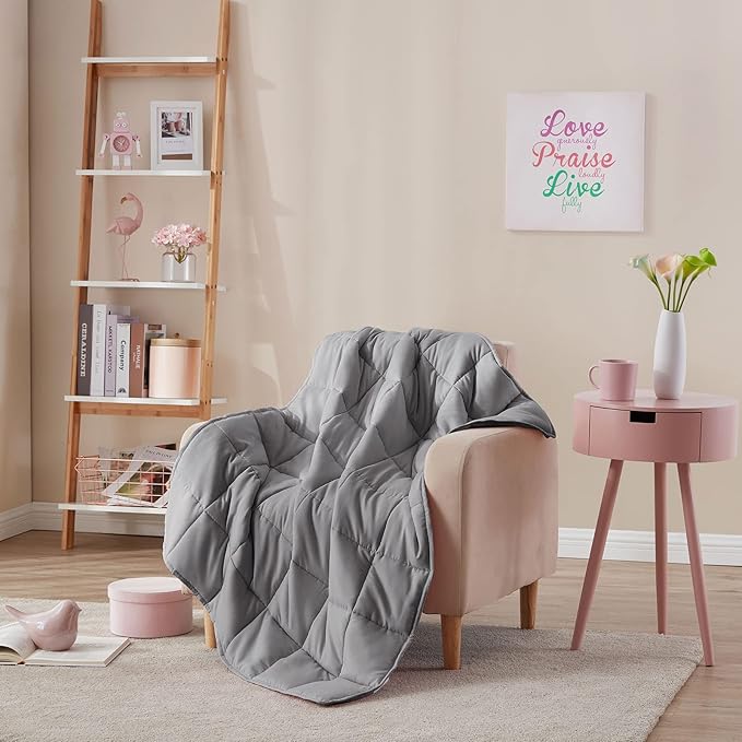 L'AGRATY Weighted Blanket Kids- 40"x60" 7lbs Cooling Breathable Heavy Blanket Microfiber Material with Glass Beads All-Season Summer Fall Winter Soft Thick Comfort