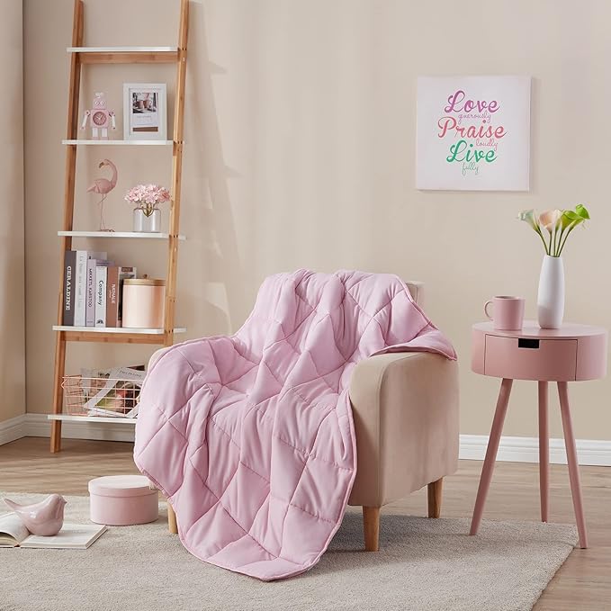 L'AGRATY Weighted Blanket - 40"x60" 7lbs Cooling Breathable Microfiber Material with Glass Beads Small Blanket All-Season Summer Fall Winter Soft Thick Comfort