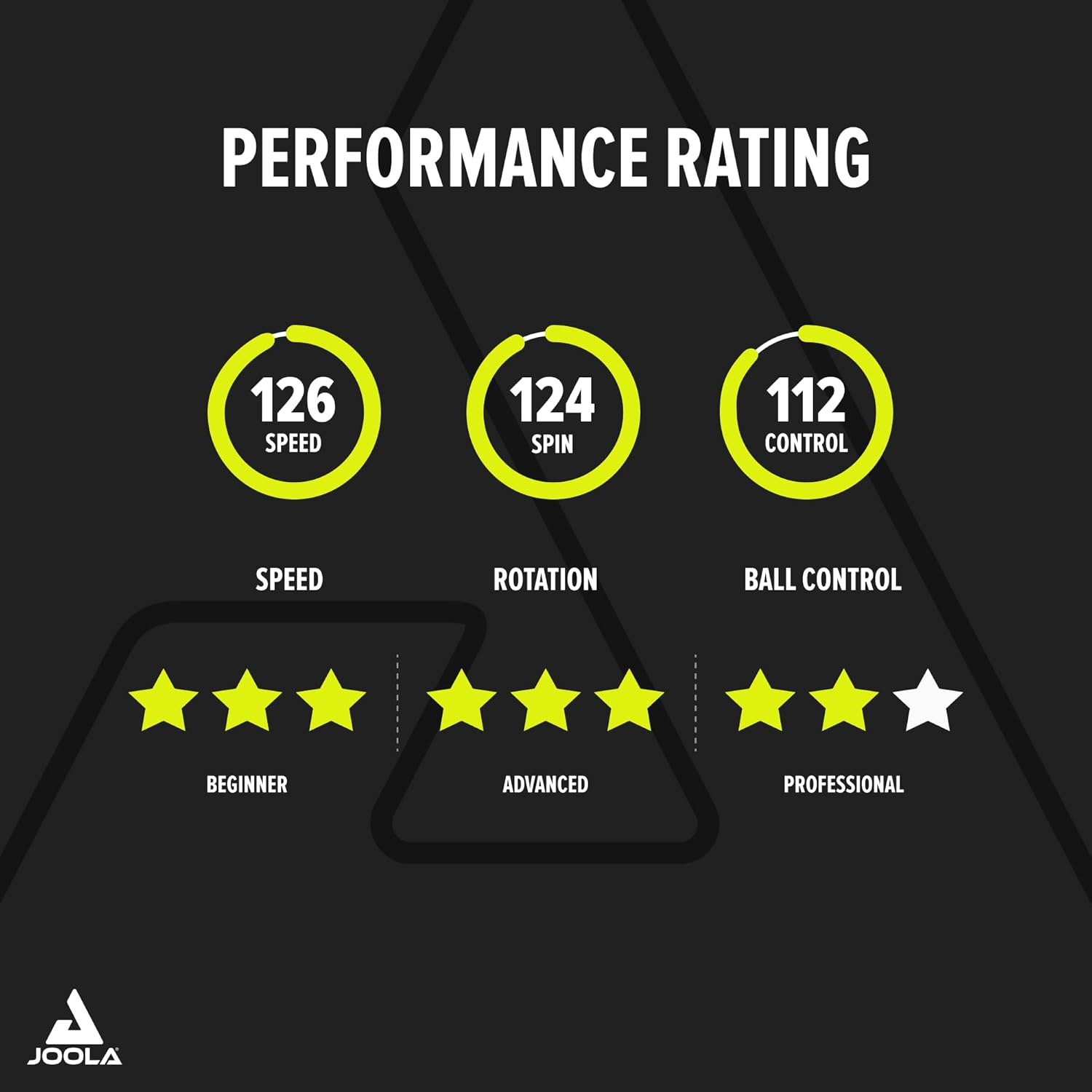 - BUILT TO PERFORM: Speed: 126, Spin: 124, Control: 112. This pre-assembled JOOLA Infinity Carbon table tennis racket is ideal for offensive play and high intensity matches. Excellent additional to your table tennis equipment needs.