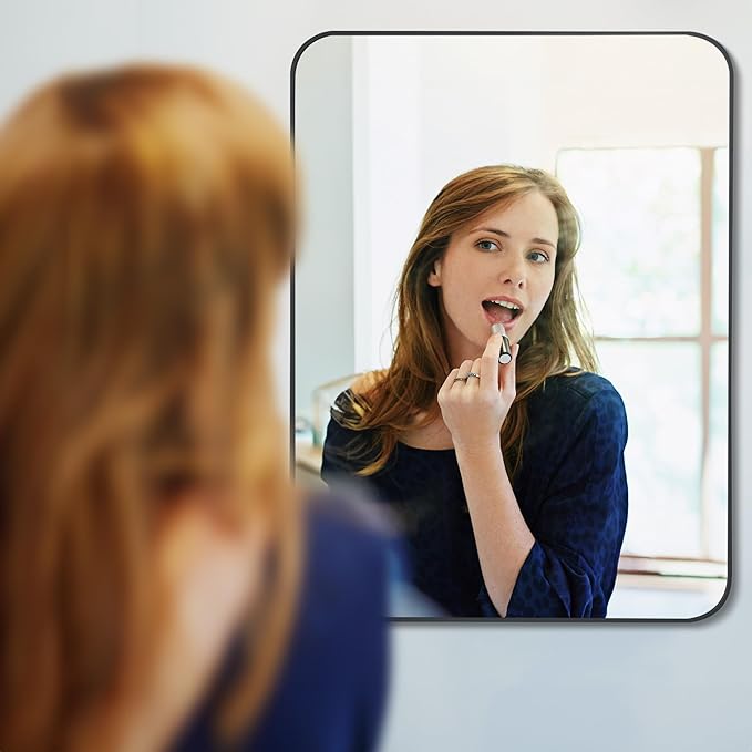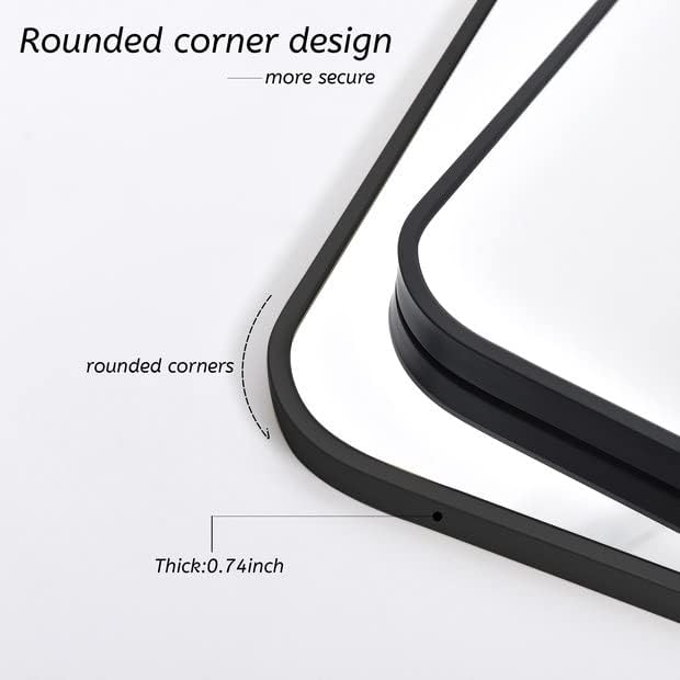 - [EXCELLENT DESIGN]: Our rounded rectangular wall mirror is designed with a kind of fashion and modern industrial style. The frame is made of brushed black metal with an angled design to protect the mirror. Besides, the black mirror is anti-stripping, anti-cracking and anti-water,and it is safer and more premium than traditional recessed frames.