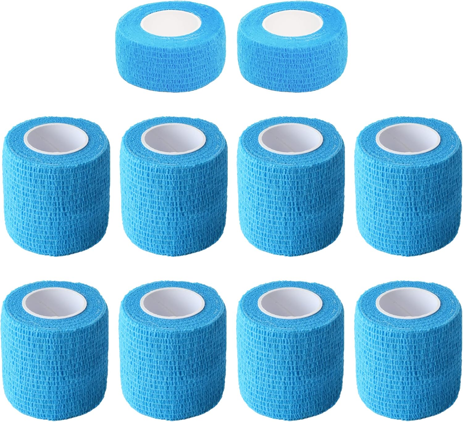 10 Pack Self Adherent Bandage Wrap Elastic Cohesive Bandage Self Adhesive Tape Vet Wrap Tape 2 Size (8Pack 2'' and 2Pack 1''), Light Blue