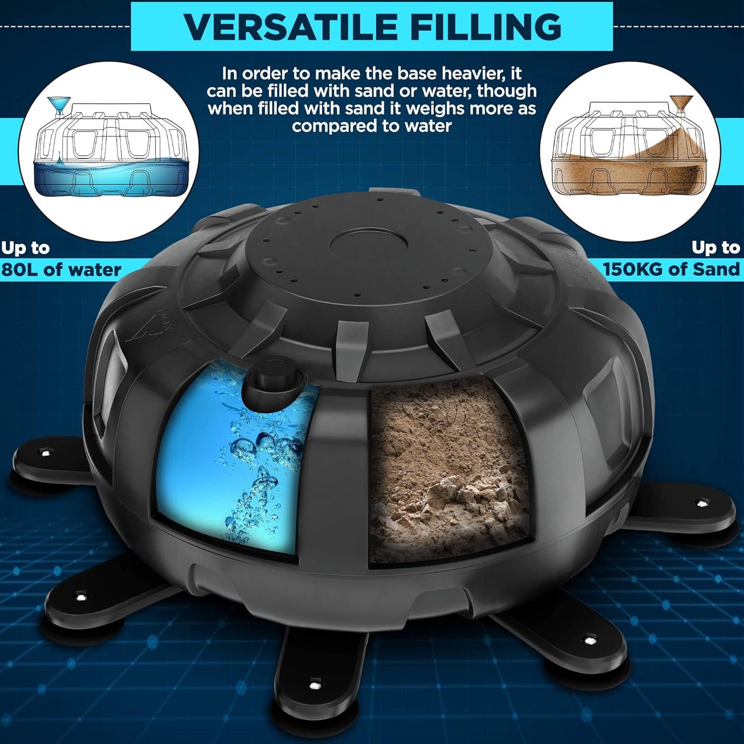 - JOLT DAMPENING BASE FOR STABILITY– Want to test your might? The RONIN punching bag stand features a wide bag base that measures 35cm in height and has a circumference of 200cm that can be filled with sand or water through the spill-proof cap with the included funnel, though when filled with sand it weighs more as compared to water. The standing boxing bag can easily be fixed on the revolutionary jolt-dampening bag-to-base connector, preventing it from excessive swaying and damaging the base.