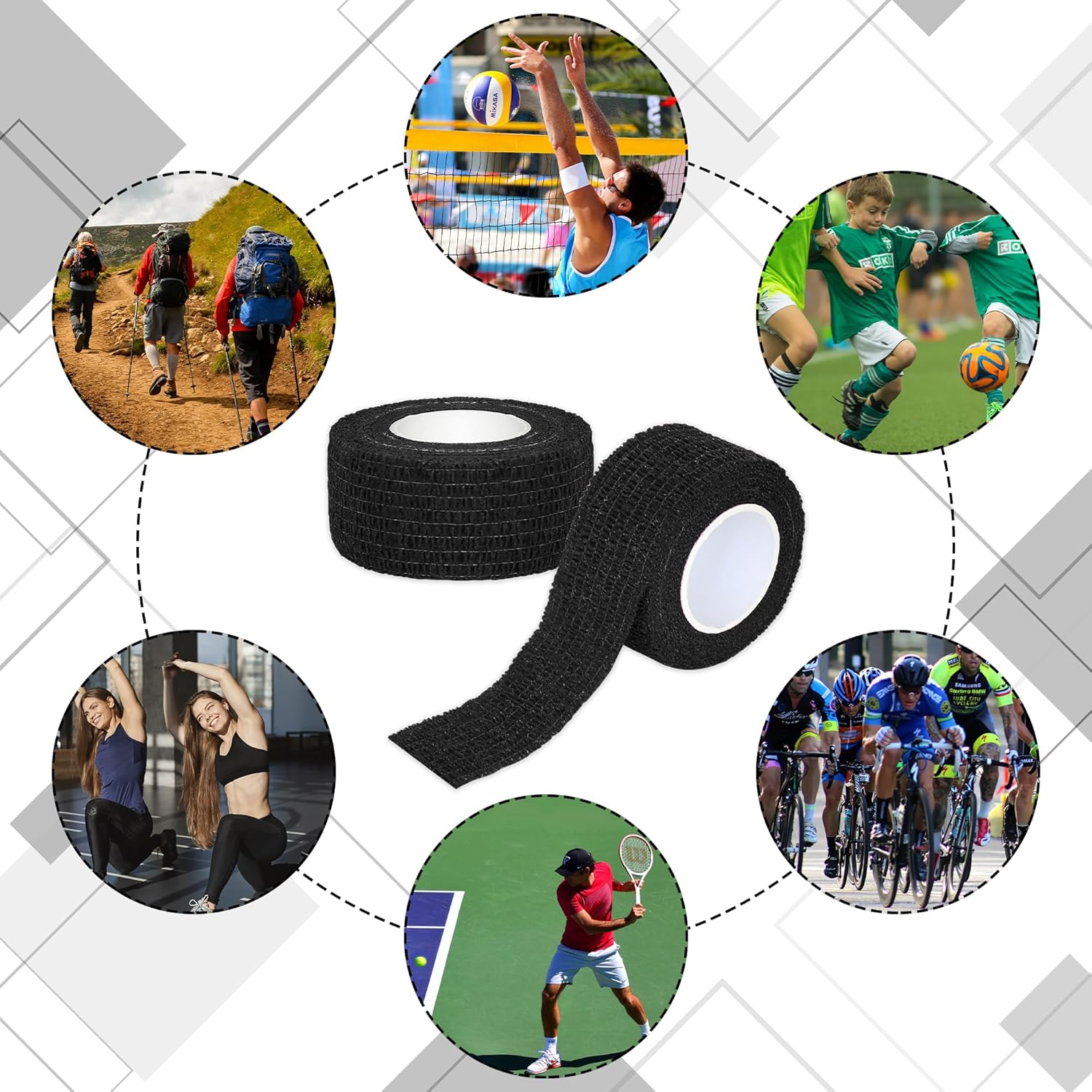 8 Rolls 1” Cohesive Bandage Self Adherent Bandage Wrap Breathable Vet Tape Elastic Adhesive Bandage for Sports, Wrist, Ankle, Tattoo Wraps(Black)
