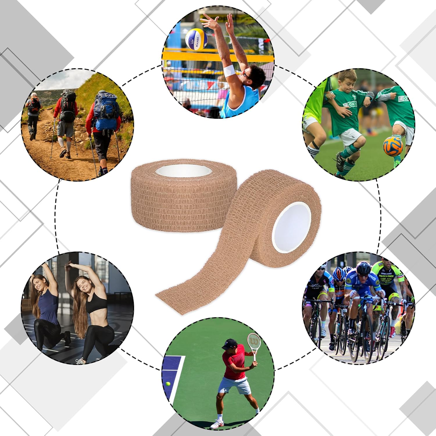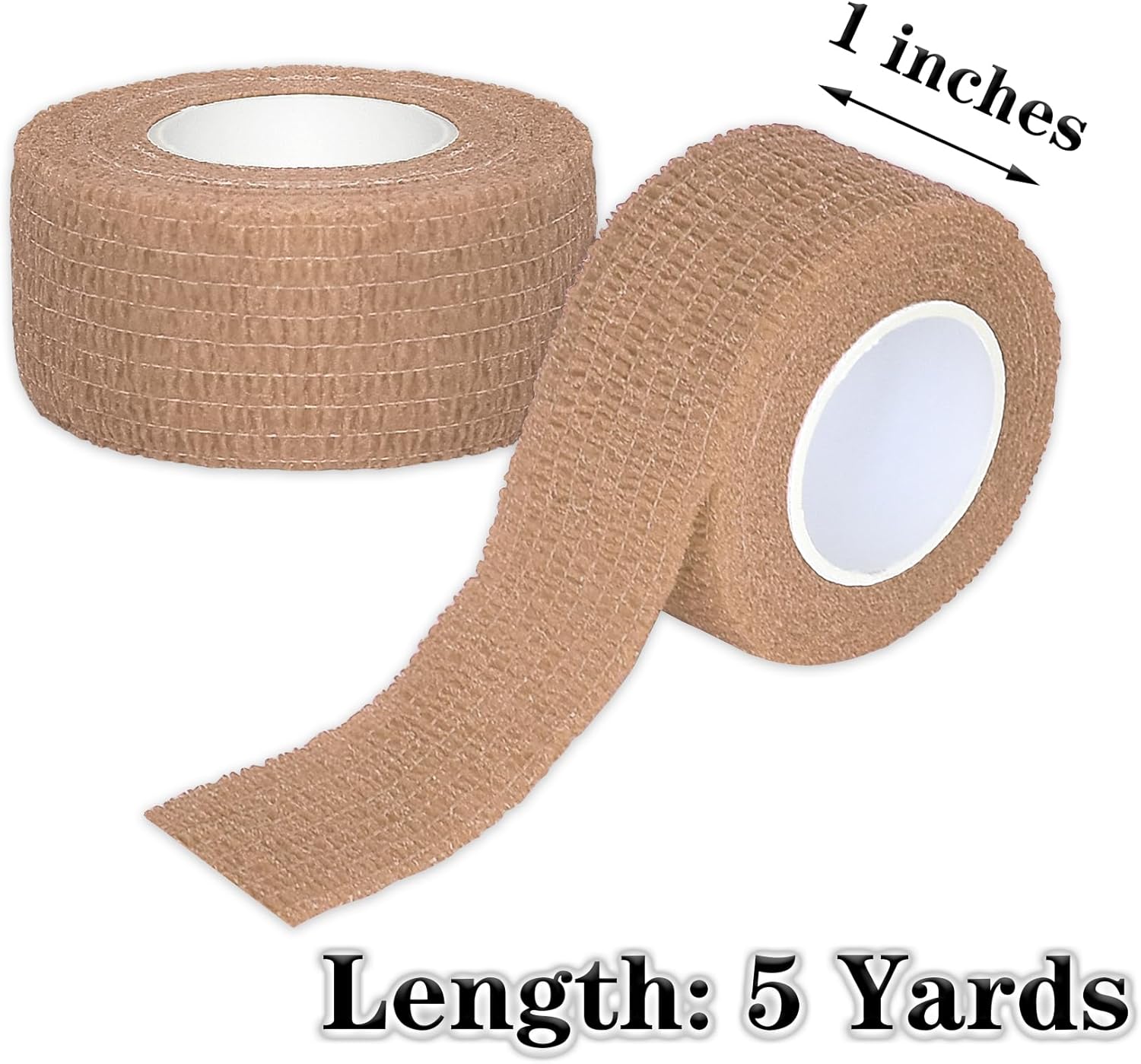 8 Rolls 1” Cohesive Bandage Self Adherent Bandage Wrap Breathable Vet Tape Elastic Adhesive Bandage for Sports, Wrist, Ankle, Tattoo Wraps(Light Brown)