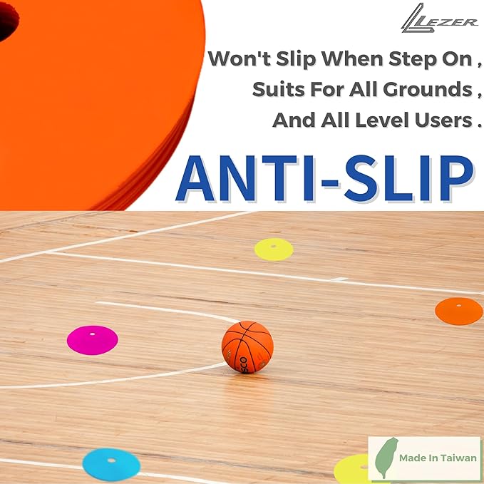 - 【Anti-slip Material For Best Safety】:Non-slip surface increases safety when step on it, cones work well on all kinds of grounds such as gym floor, hardwood and pavement.