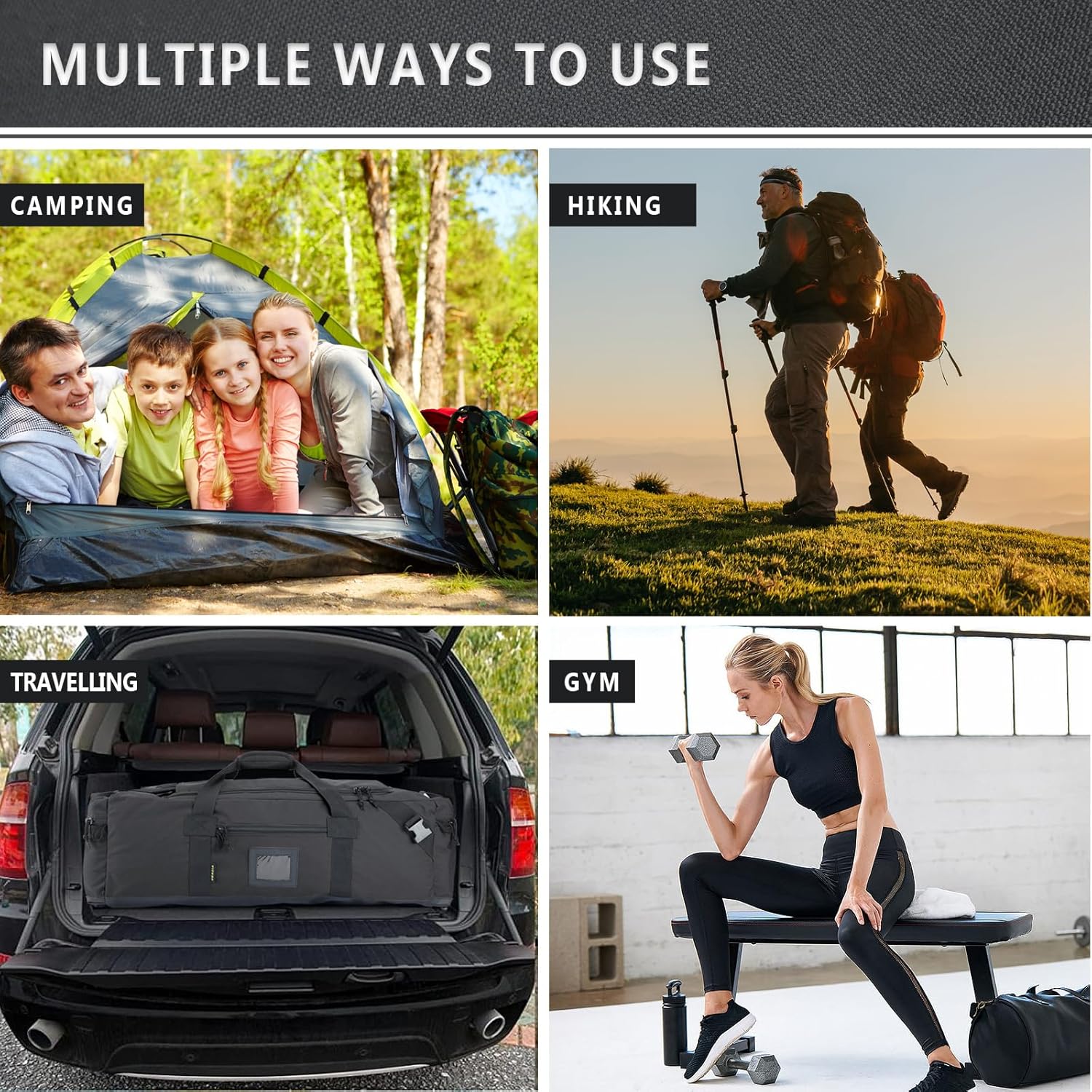 - MULTIPURPOSE: canvas gym duffle bag is suitable for both men and women and can be used as a weekender bag, large backpack for travel, sports equipment storage, car equipment bags, Family Storage Bag,deployment bag,or simply as a large duffle bag for Great for customers who like camping, outdoor sports, family travel,etc