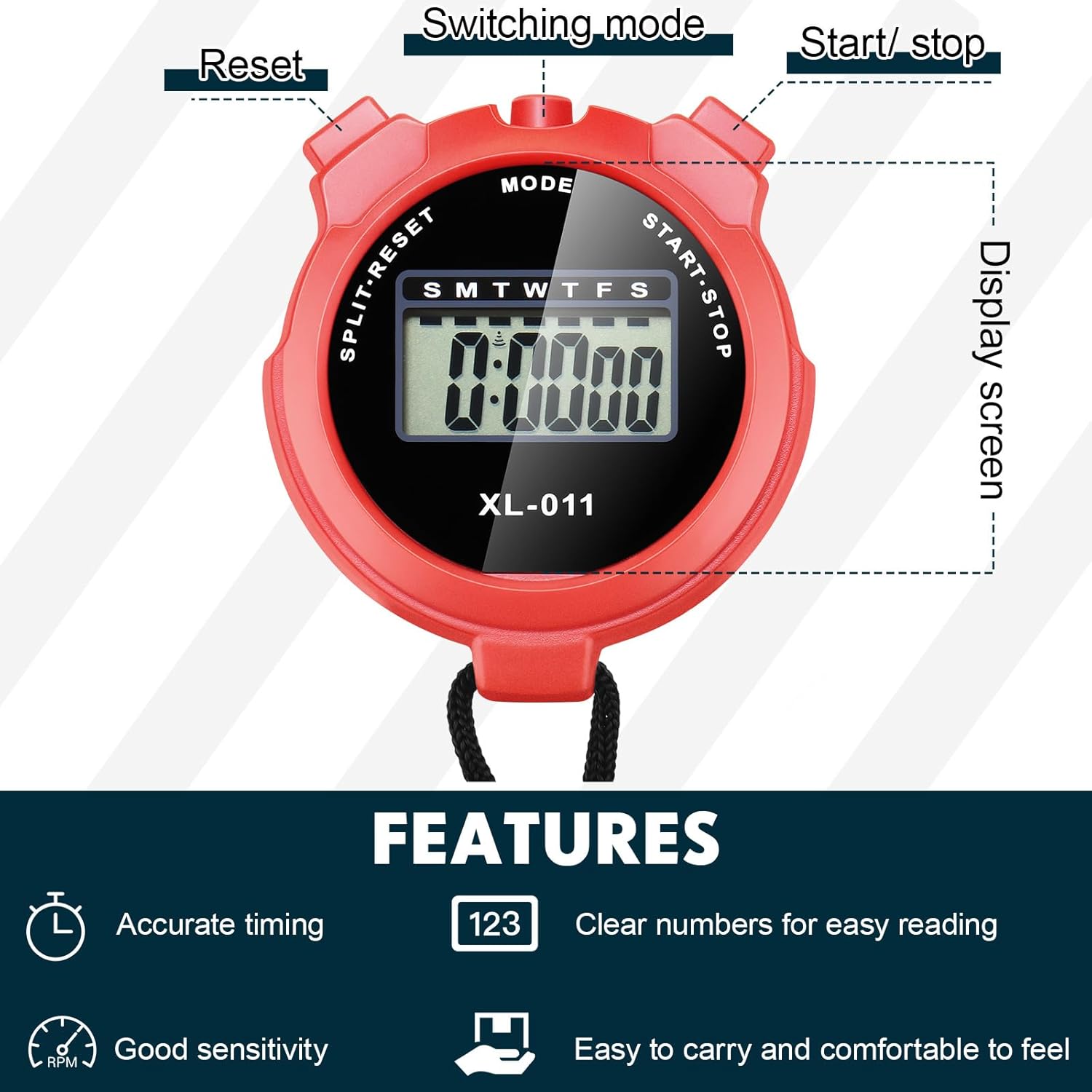 - Easy to Use: this digital stopwatch is easy to operate and can be controlled with 3 buttons: reset, toggle, and start or stop mode; It features good timekeeping and with day of the week display and alarm function for quick and easy positioning and operation during practice or competition