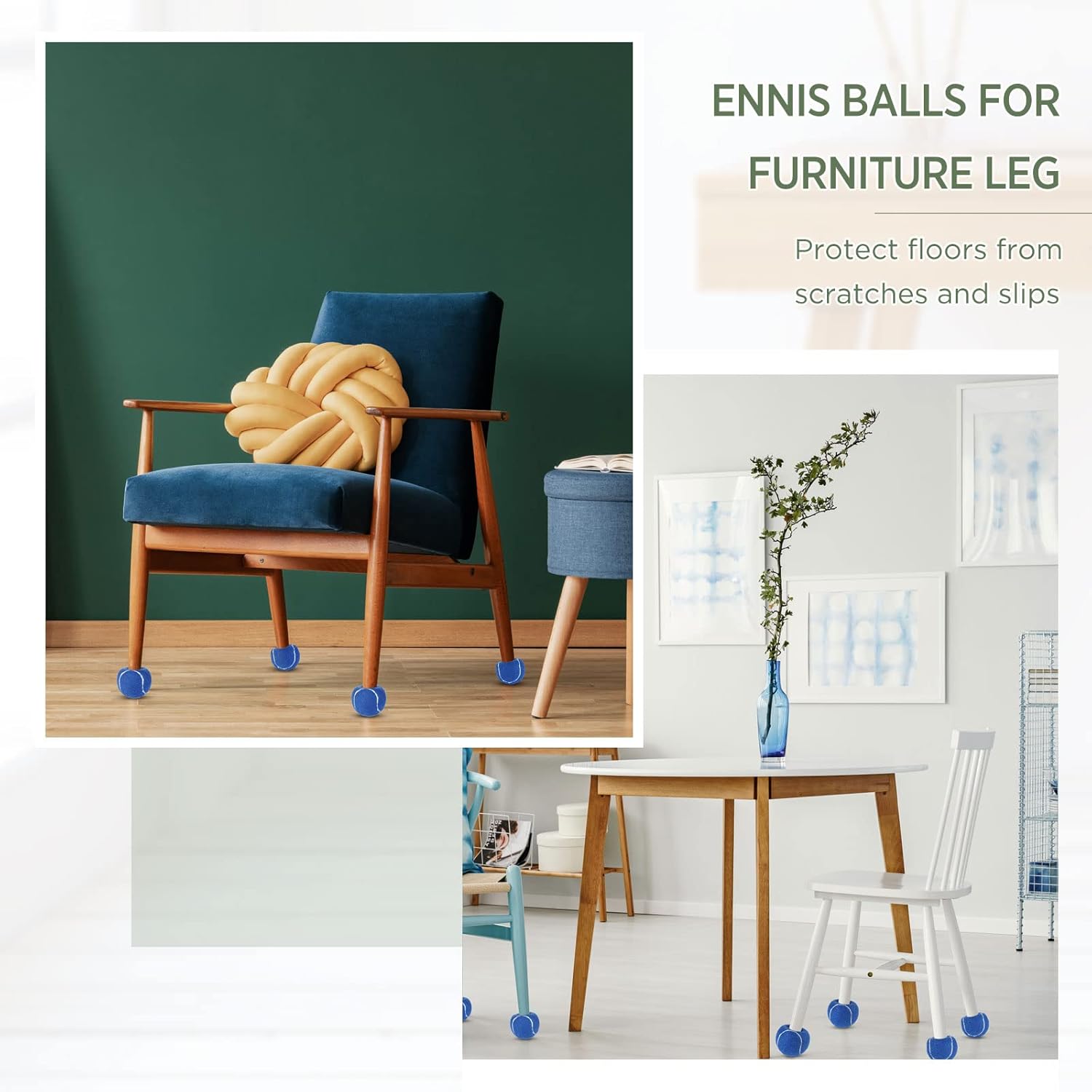 - Almost No Noise at All: use our furniture tennis balls to avoid scratching your wood, laminate, or tile floors by placing them on the legs of your furniture, such as tables, chairs, sofas, and other items; Additionally, that unpleasant scratching noise is no longer necessary
