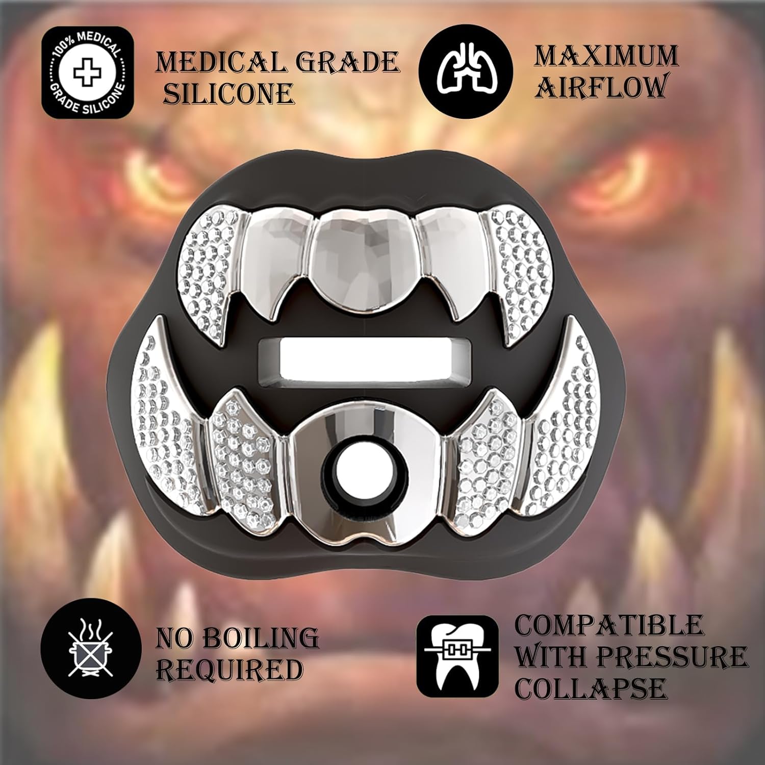 LeCool Football Mouth Guard with Connected Strap- 3D Beast Chrome Adult and Youth Mouth Guard-Mouth Piece for Sports for Maximum Air Flow and Teeth Protection