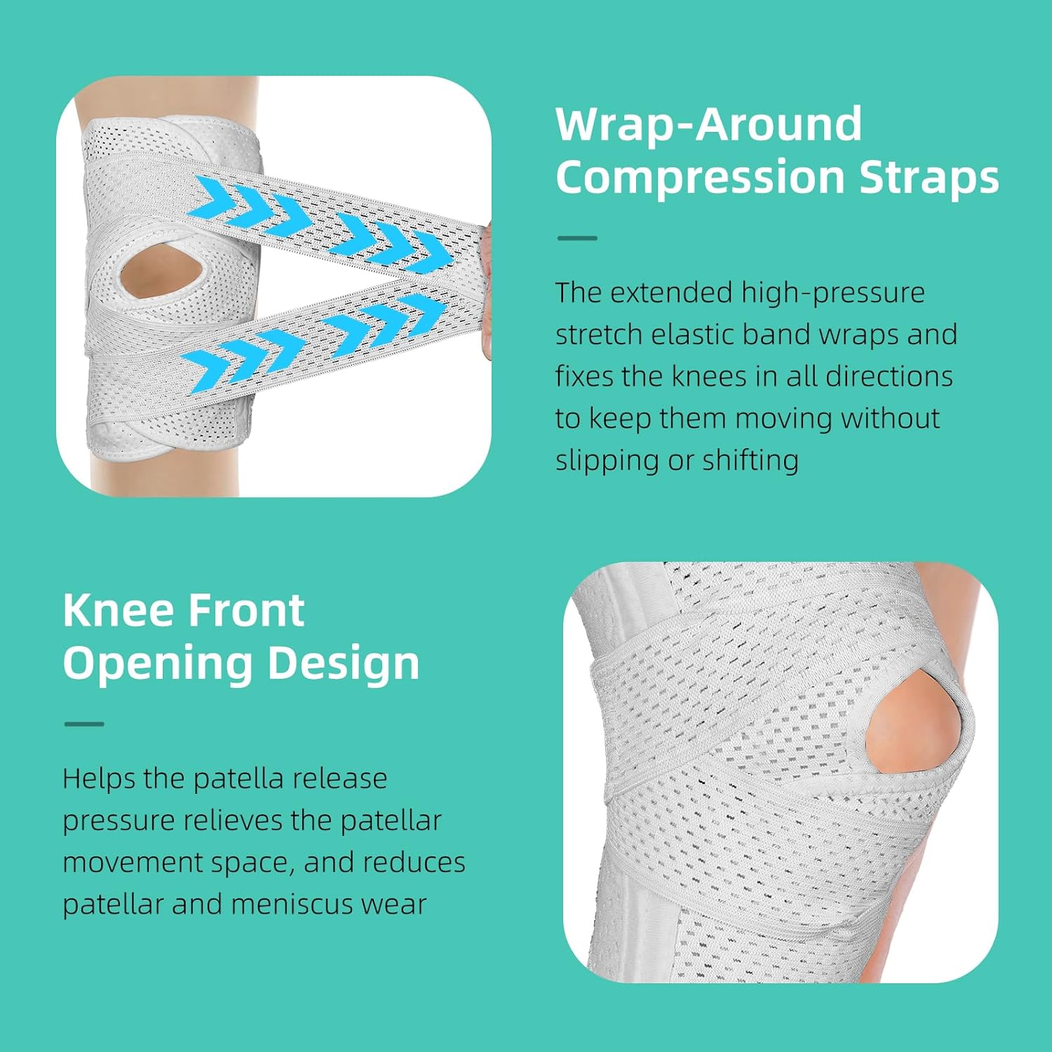 - Adjustable Compression for a Perfect Fit: The double wrap around compression straps ensure a snug and secure fit, allowing you to customize the level of support and ensuring a proper alignment of the knee joint.