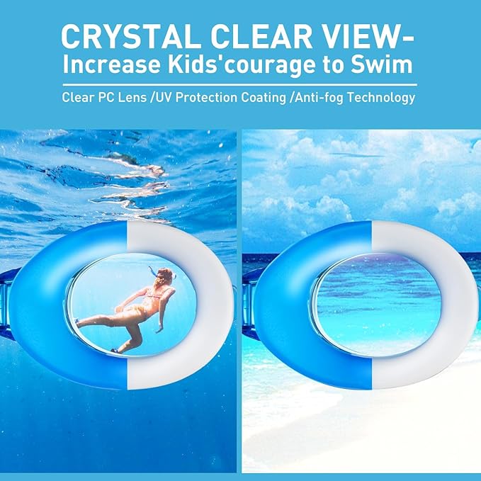 - 【Crystal Clear Underwater】 With the high transmittance and wide view of the clear flat PC lens, Aegend swim goggles for kids help your children see crystal clearly underwater so they have more courage to explore the mysterious underwater world. Perfect for little boy's and girl's swimming lessons and inspiring them to swim.