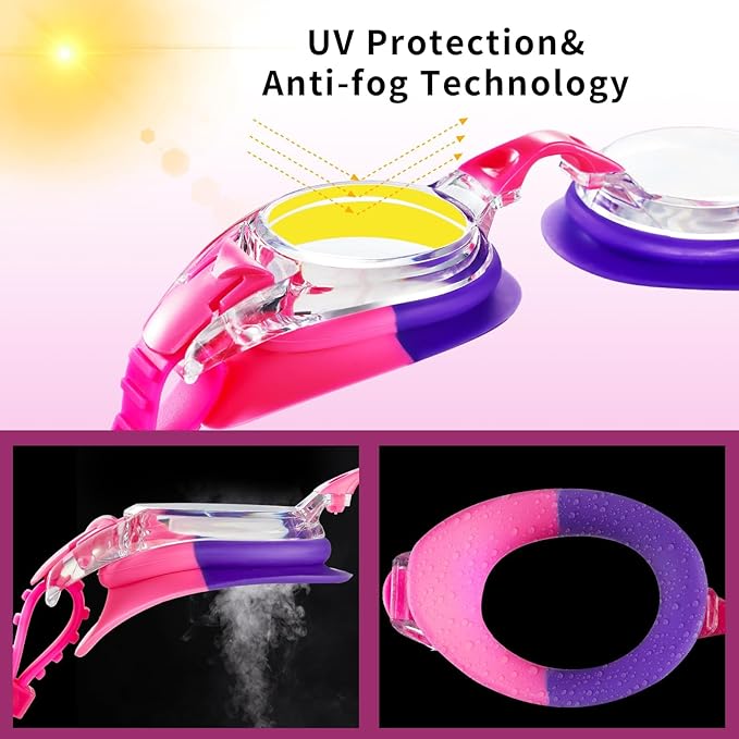- 【3 Interchangeable Nose Pieces & Perfect Fit】 Each color of goggles comes with three flexible and detachable nose pieces of different sizes, perfect for children with different nose Bridges. Agend goggles are made from safe and odorless soft silicone, which can relieve the pressure on the skin and also create waterproof seal to safeguard children from raccoon eyes, and chlorine. Kids enjoy the fun of water happily and safely.