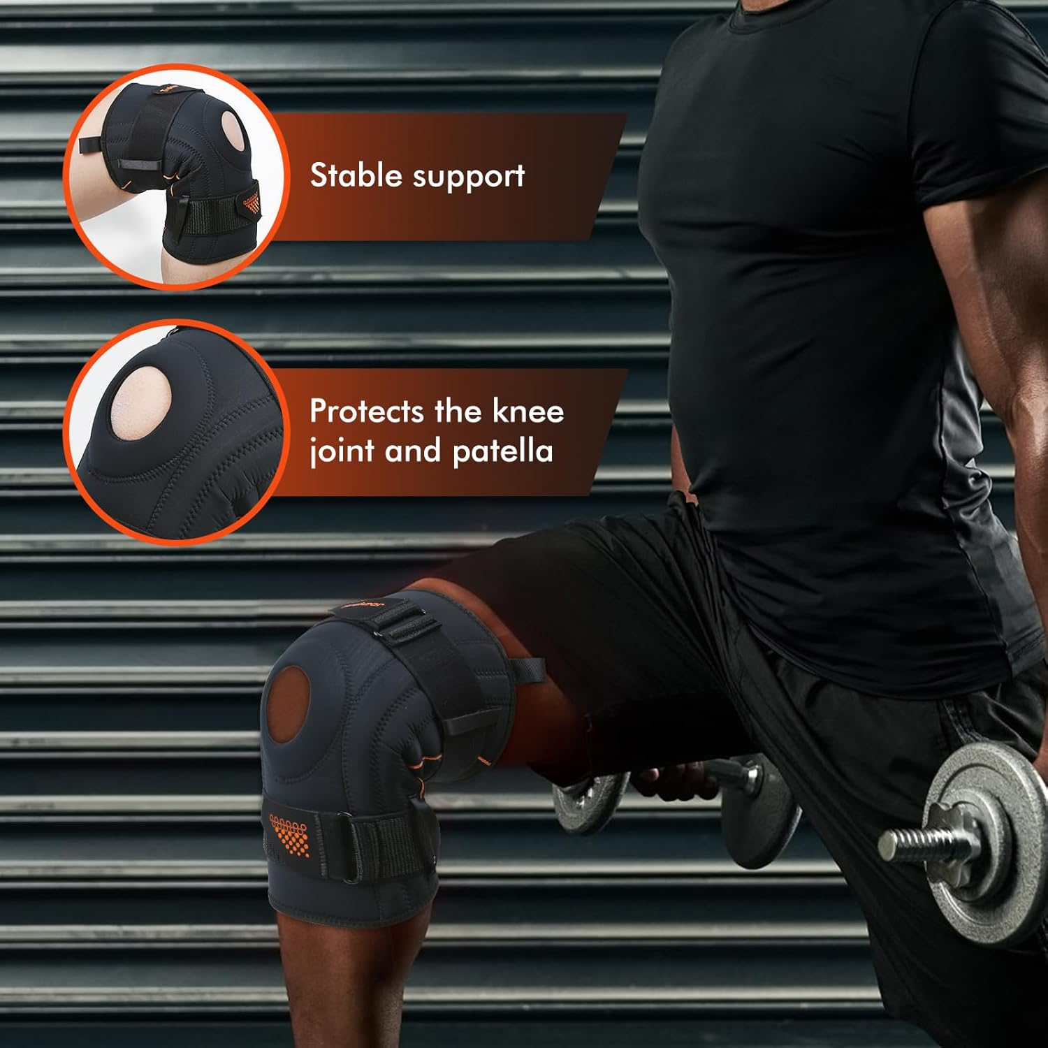Adjustable Knee Brace for Women and Men, Patella Stabilizer Knee Brace, Knee Support with Side Stabilizers for Knee Pain Relief, Meniscus Tear, and Arthritis Pain (Black, Large)