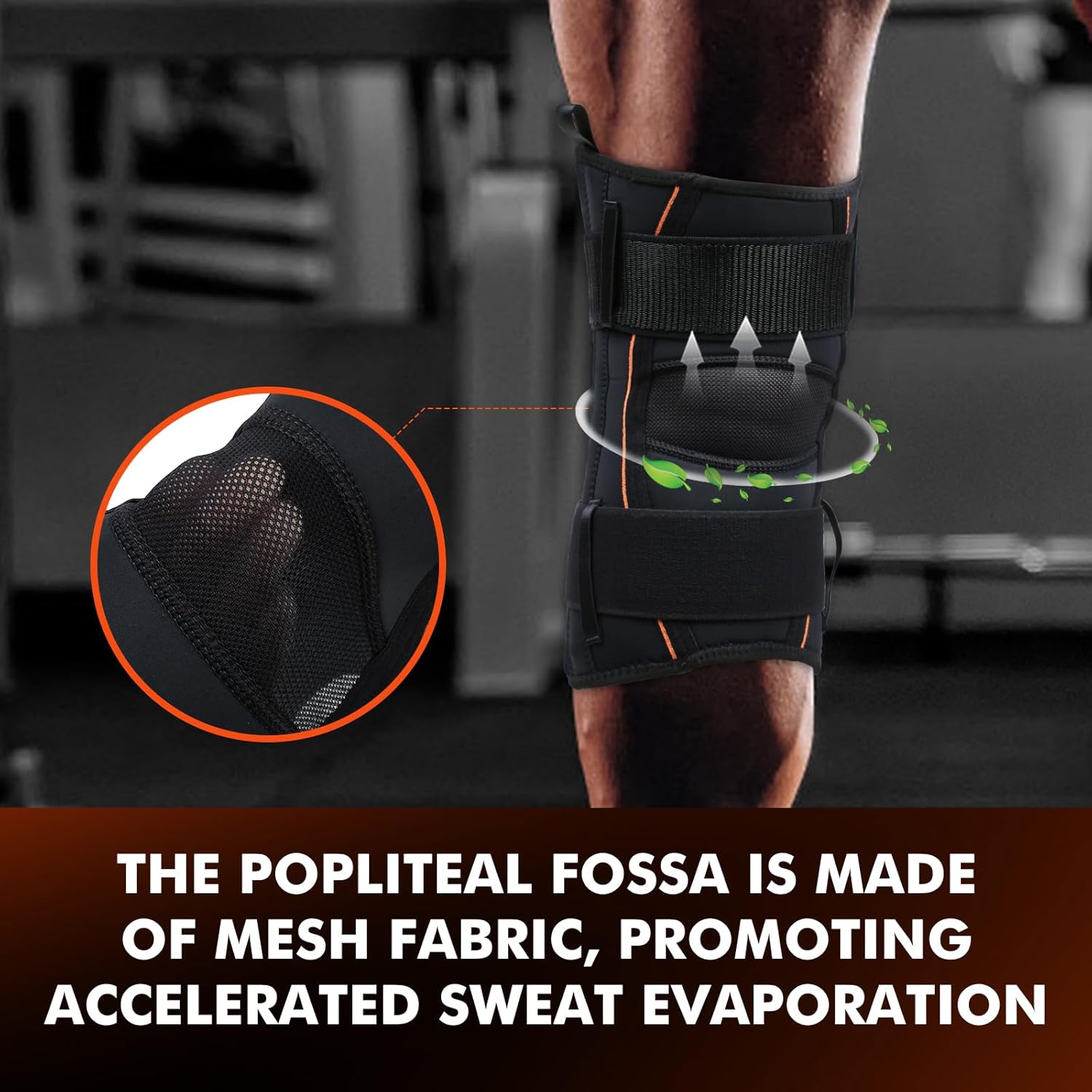 - Say goodbye to uncomfortable, itchy braces! Our neoprene knee brace is made with breathable mesh fabric in the popliteal fossa, promoting accelerated sweat evaporation and comfortable wear for extended periods.