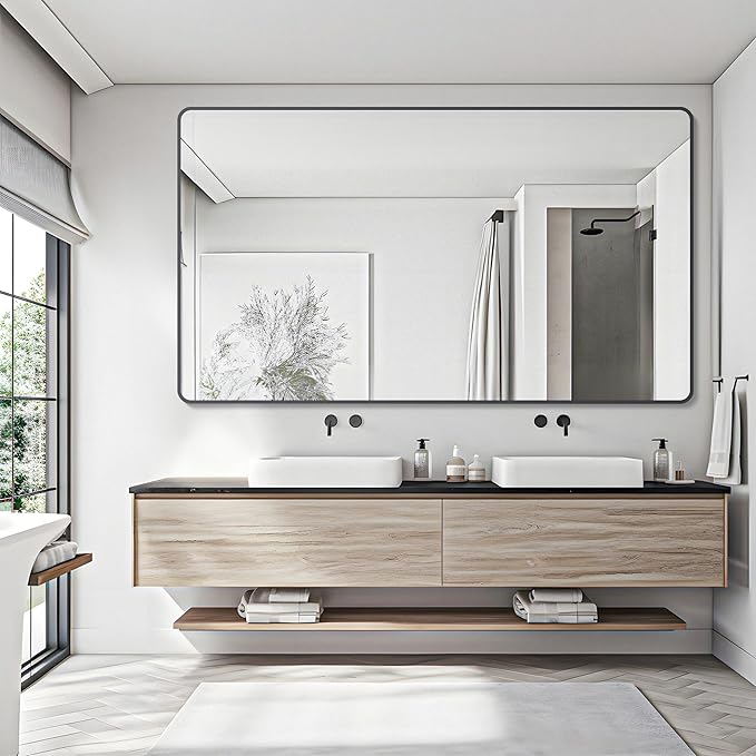 - [4mm HD Shatterproof Glass]:Our bathroom wall mirrors use multi-layer advanced technology, bathroom vanity mirrors are made of HD glass. The mirror reflects clearly and will not be distorted from any angle.