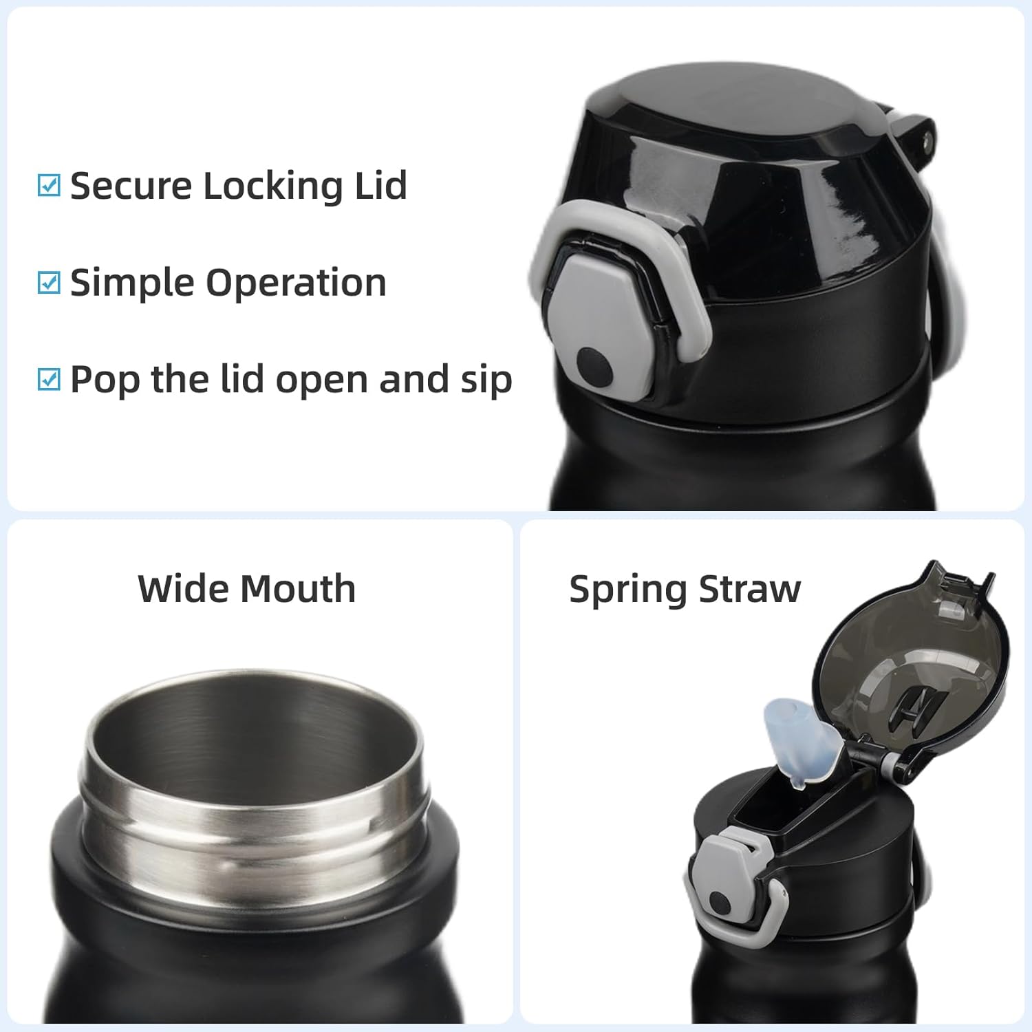 - Equipped with a lockable flip lid and a spring straw, the bottle is leak-proof,left it in your bag without worrying any spills. Simple operation design ensures you Just pop the lid open and sip.Soft silicone spout makes a nice drinking experience.