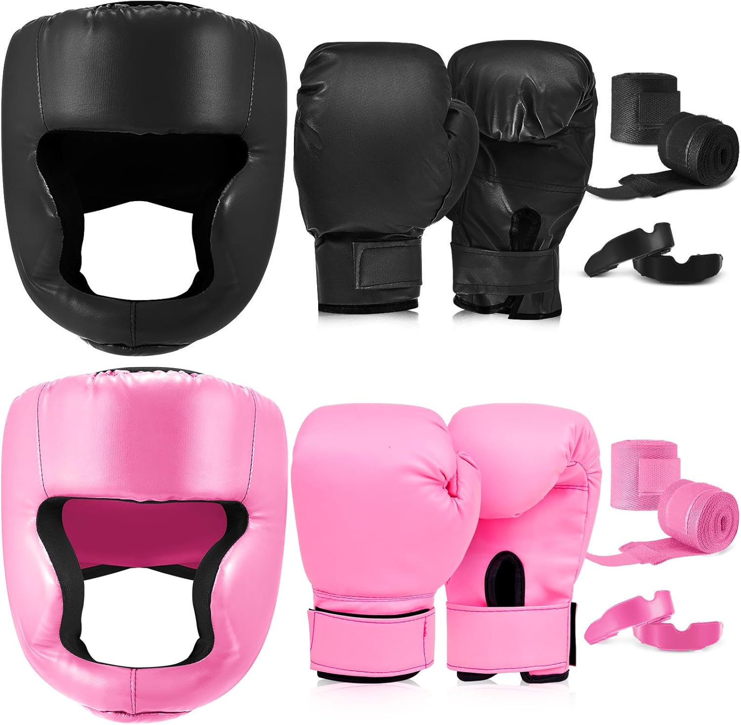 - Comprehensive Combination for Beginners: the package will provide you with 2 sets of boxing gear in pink and black color, each set includes 1 piece of helmet, 1 pair of boxing gloves, 2 rolls of boxing hand wraps and 2 pieces of boxing mouth guards, offering you safety during training